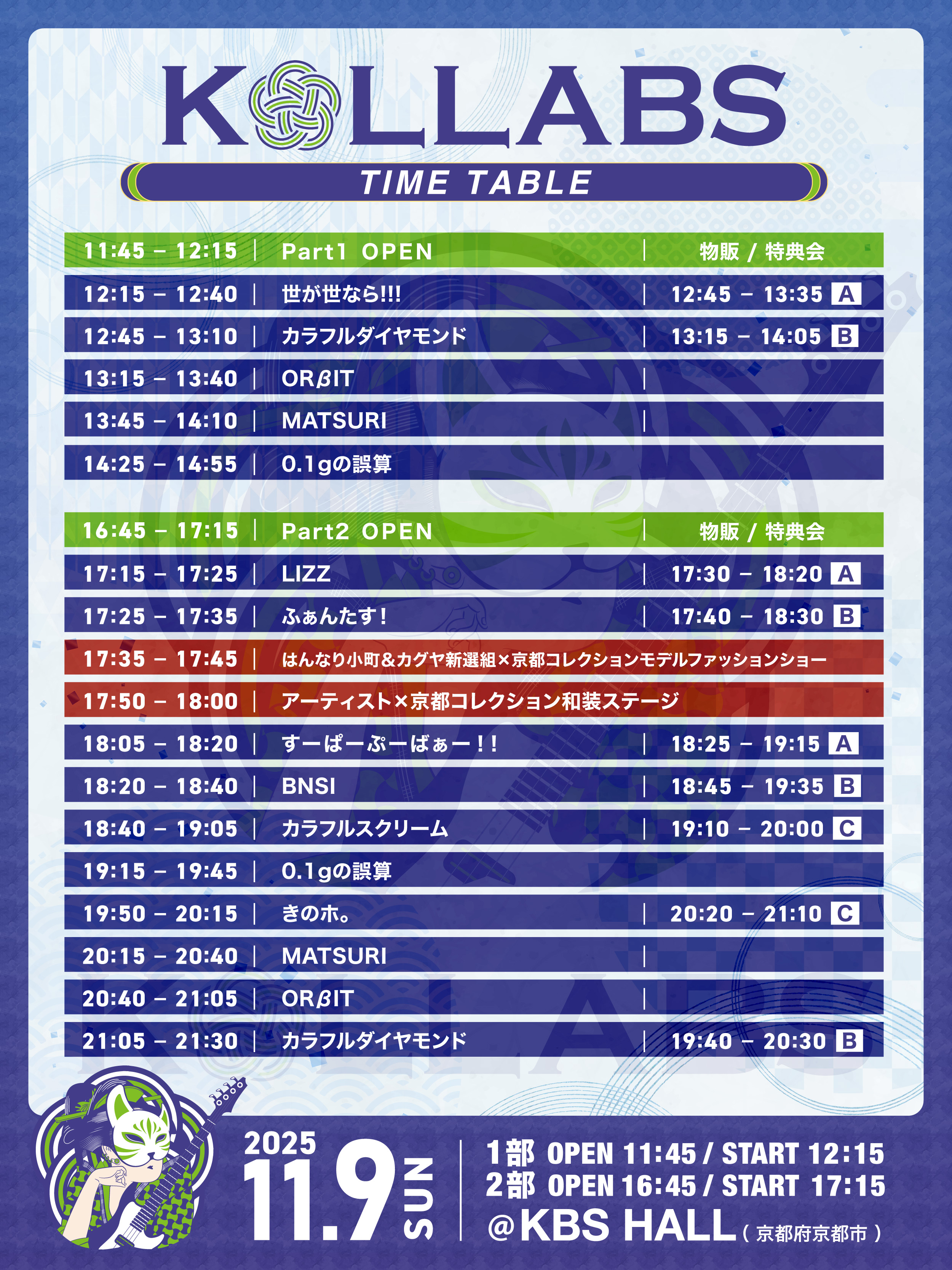 11/9(日)開催のKOLLBS!当日券の販売が決定いたしました!